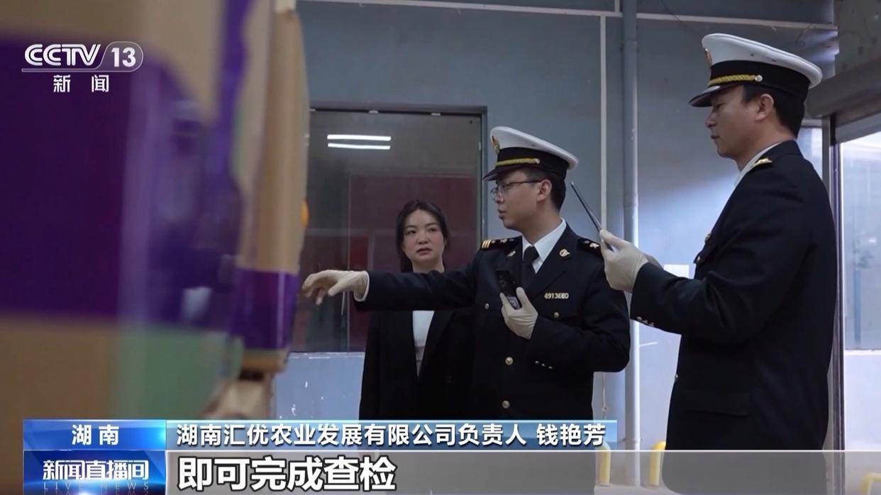 湖南汇优农业发展有限公司负责人 钱艳芳:四类产品同车拼装,冷链货车空间利用率更高,单趟运输成本对比之前果蔬拼装再降低10%左右。叠加远程查检便利举措,我们与海关关员通过手机视频连线即可完成查检,通关时间还可再缩短二至三个小时。