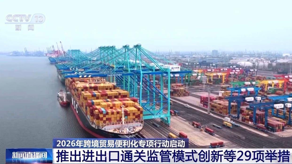 16日,海关总署会同中央网信办、外交部、国家发展改革委、工业和信息化部等24个部门(单位),联合部署开展2026年跨境贸易便利化专项行动。00:502026年跨境贸易便利化专项行动围绕优化升级货物贸易、大力发展服务贸易、创新发展数字贸易、绿色贸易等重点任务,推出新一轮助力外贸提质增效的便利化政策措施,主要包括深化进出口通关监管模式创新、优化外贸新业态监管服务、提升跨境物流运输效能、加强数智口岸建设、推进标准规则互联互通、强化对企综合服务等29项举措。