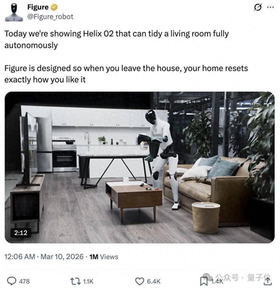 据了解,此次解锁客厅整理新任务,团队并未新增算法,也未进行特殊场景的工程适配,仅通过补充最新场景数据,便让Helix 02系统成功掌握了这一复杂日常任务。