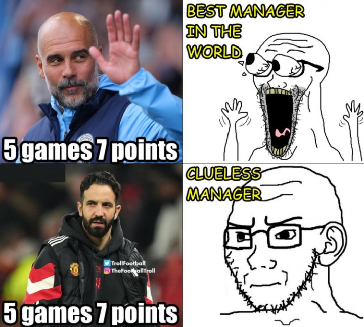 阿莫林5轮7分骗子教练!瓜迪奥拉5轮7分尽显世一帅风范