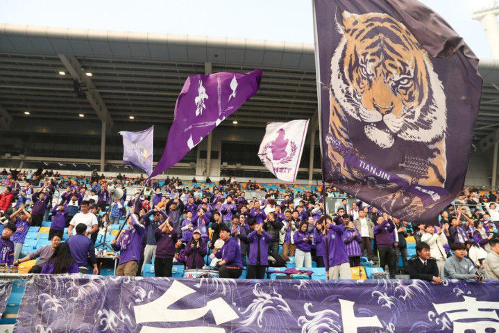 赛前的泰达足球场早已被紫色浪潮包裹,助威声此起彼伏。考虑到天气转凉,球场各档口备好的热水冒着氤氲热气,球迷们手捧热饮观赛的身影,成为这个秋日赛场特有的温暖景致。