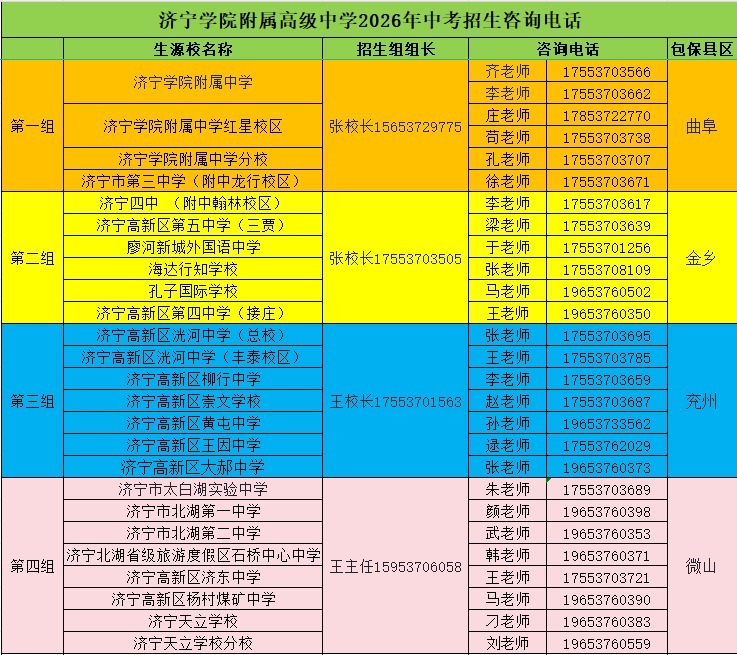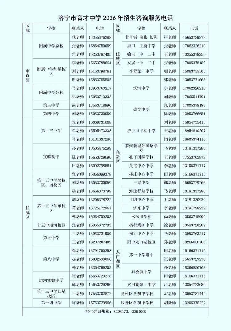 济宁市第一中学2026年中考招生咨询电话